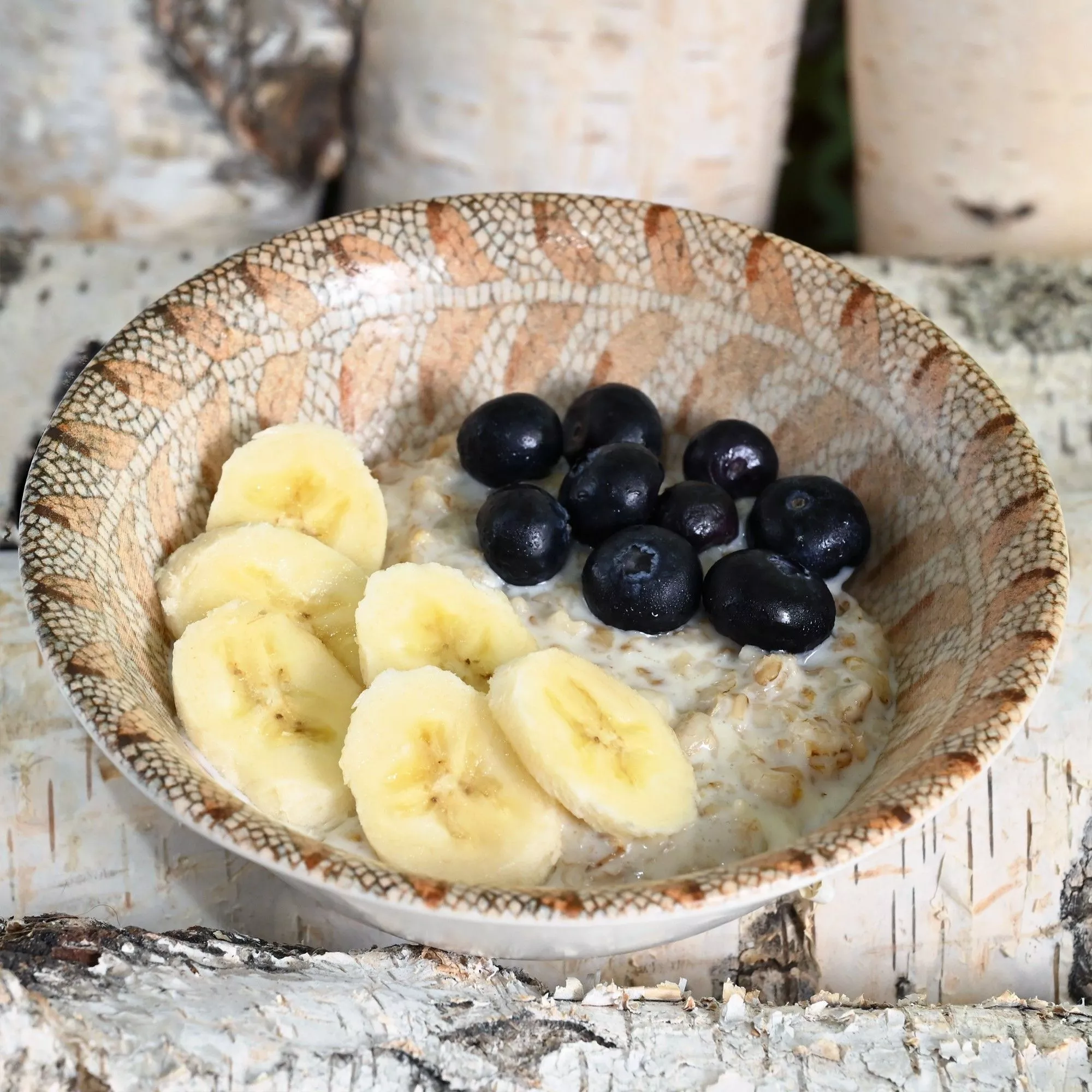 Хлопья овсяные, молоко, сахар, сливочное масло, банан, свежая ягода |