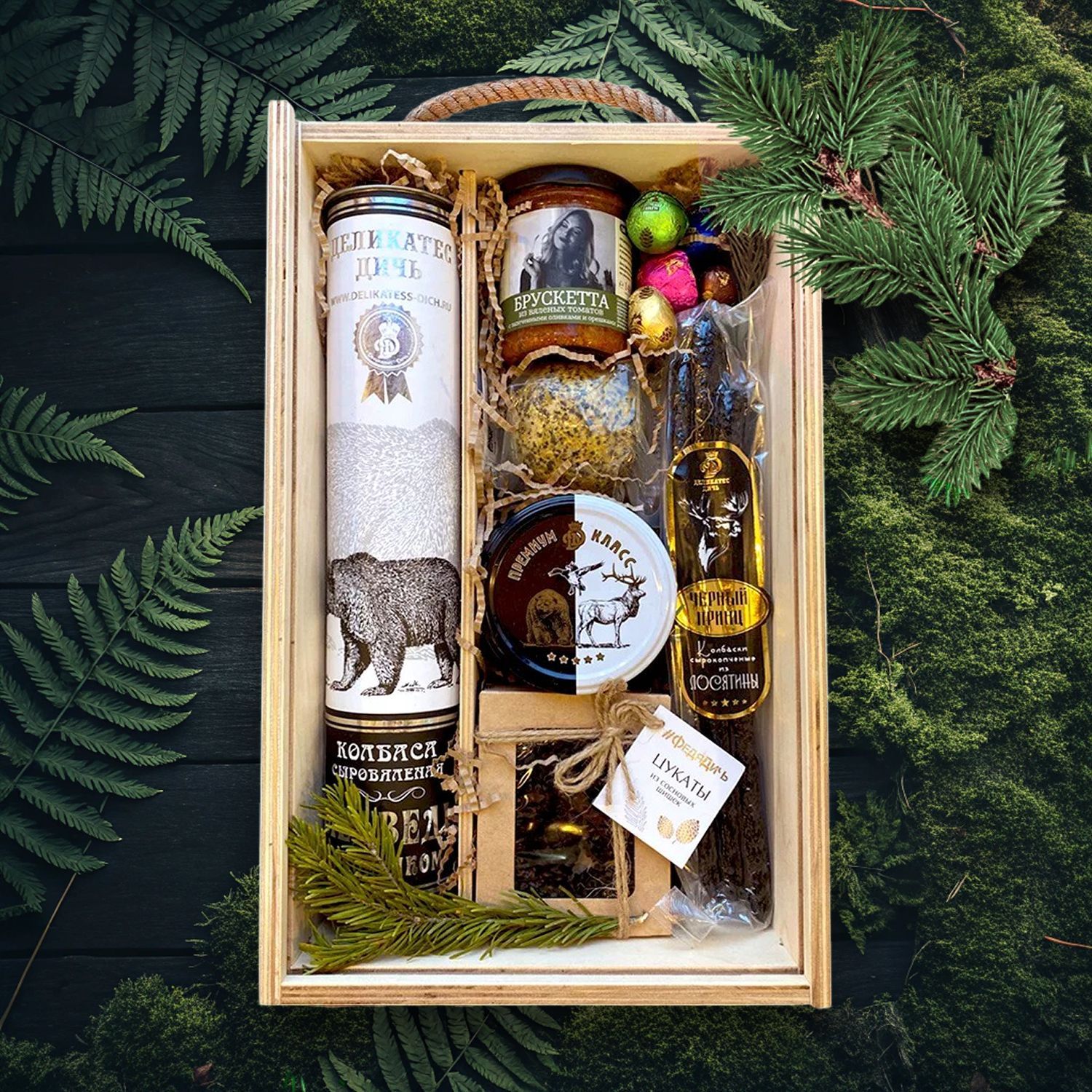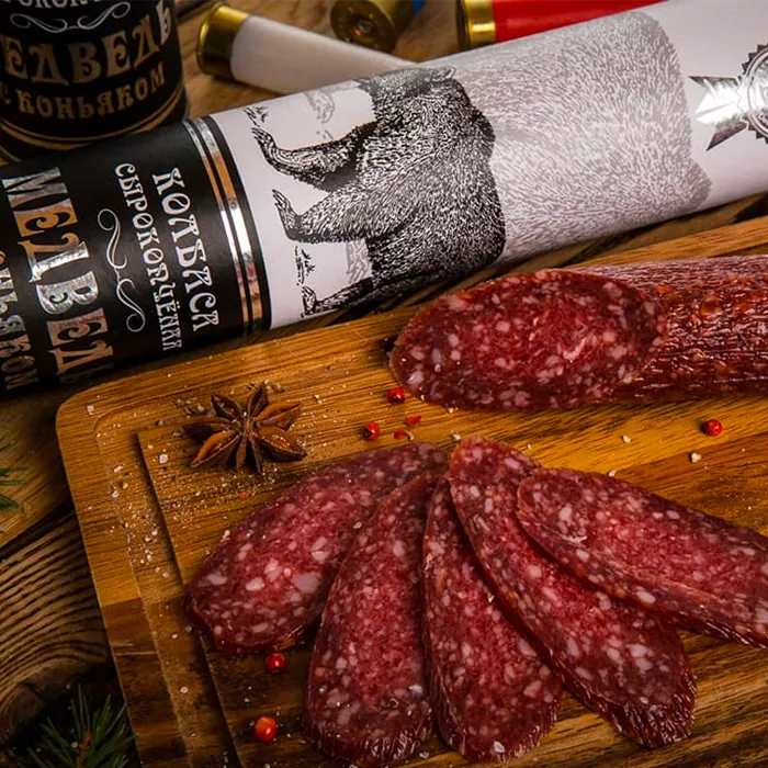 Колбаса из мяса Медведя с коньяком в подарочной упаковке (тубус)