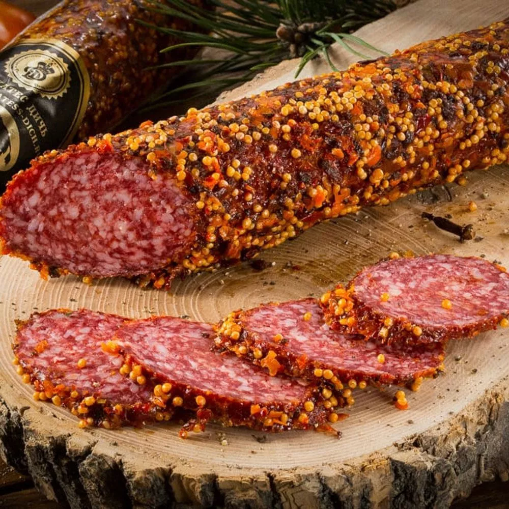 Колбаса «Кабан» с горчицей, Колбаса вяленая из мяса куропатки и лося, Паштет из мяса медведя, Сосновые шишки в тёмном, молочном, белом шоколаде, Шоколадные конфеты «Ассорти».