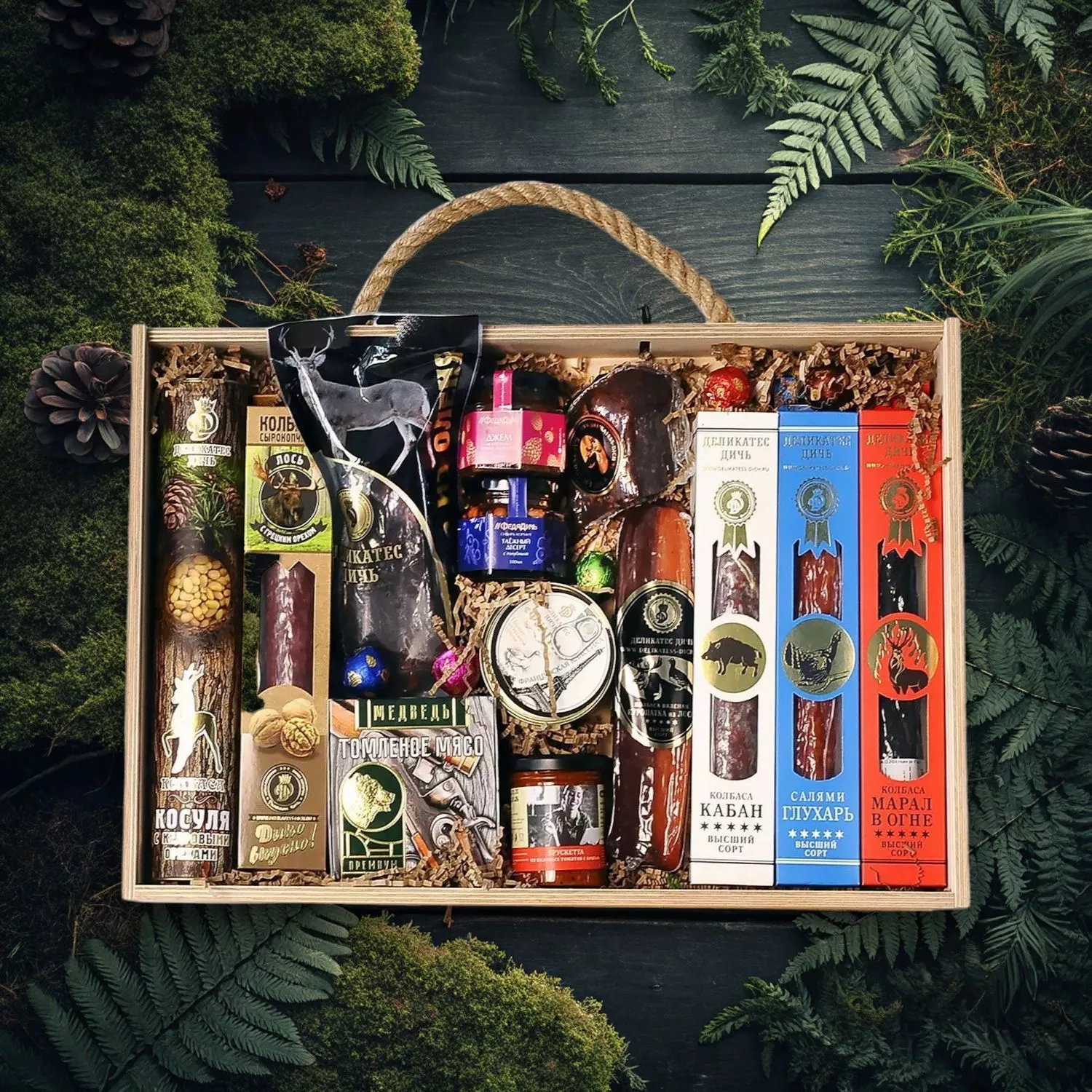 Колбаса из мяса лося с грецким орехом в подарочной упаковке,