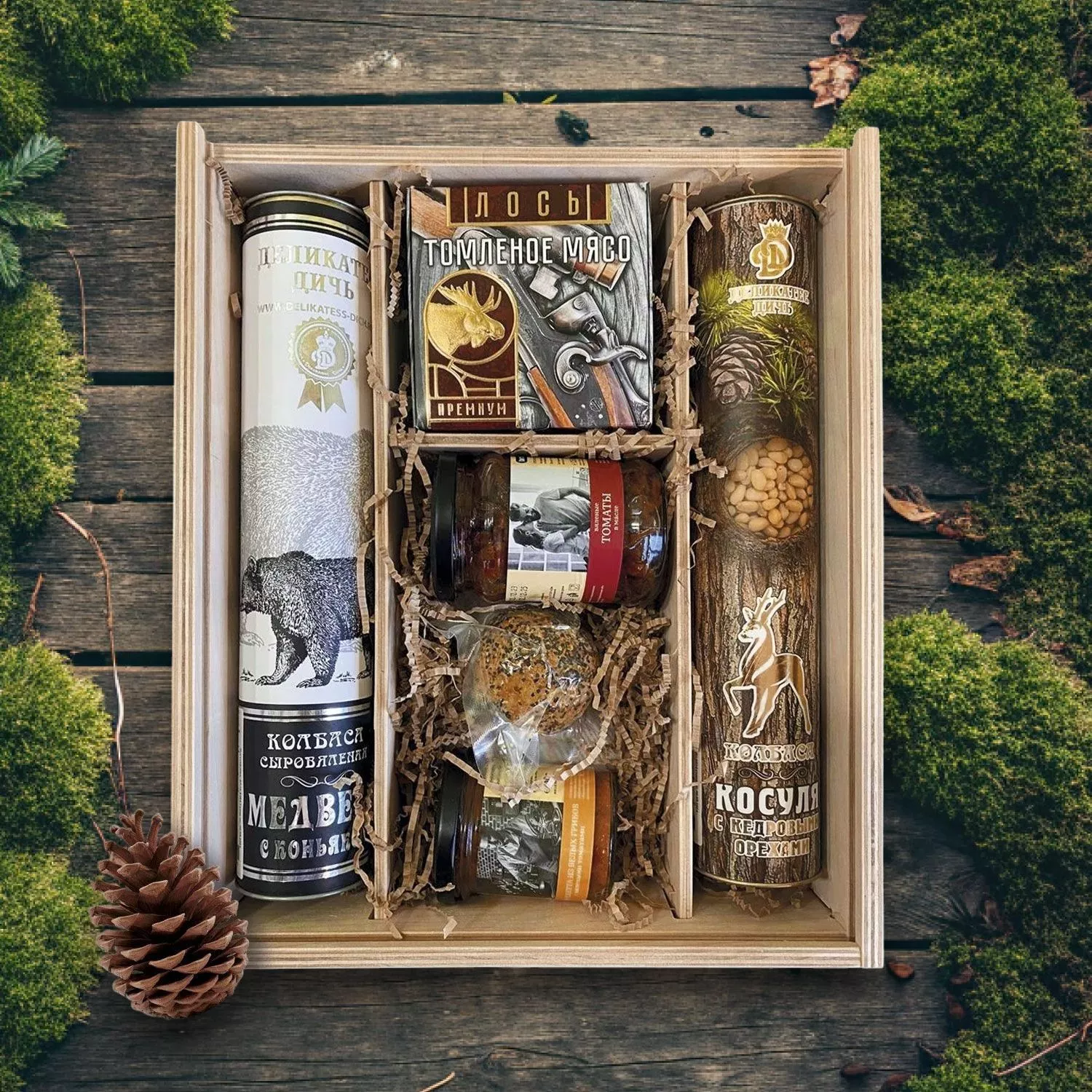 Колбаса из мяса Косули с кедровыми орехами» в подарочной упаковке (тубус);