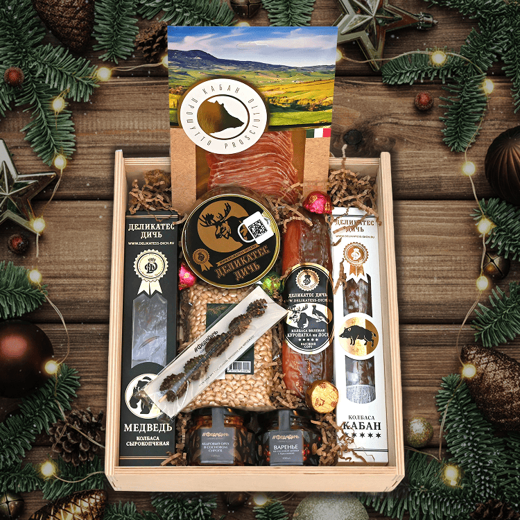 В стоимость набора входит деревянный бокс с крышкой #ФедяДичь. При желании можно дополнительно подобрать новогоднюю крышку либо крышку-картину омского художника Сергея Демиденко с пейзажами зимнего г.Омска (наличие и ассортимент уточняйте у менеджера при оформлении заказа)