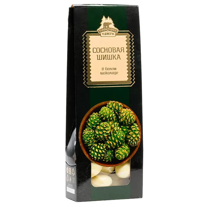 Попробуйте изысканное лакомство из Сибири! Корпус конфеты состоит из цельной молодой сосновой шишки, томленой до мармеладоподобного состояния, покрыт натуральным бельгийским шоколадом. Красивая упаковка делает наши конфеты прекрасным подарком по любому поводу.