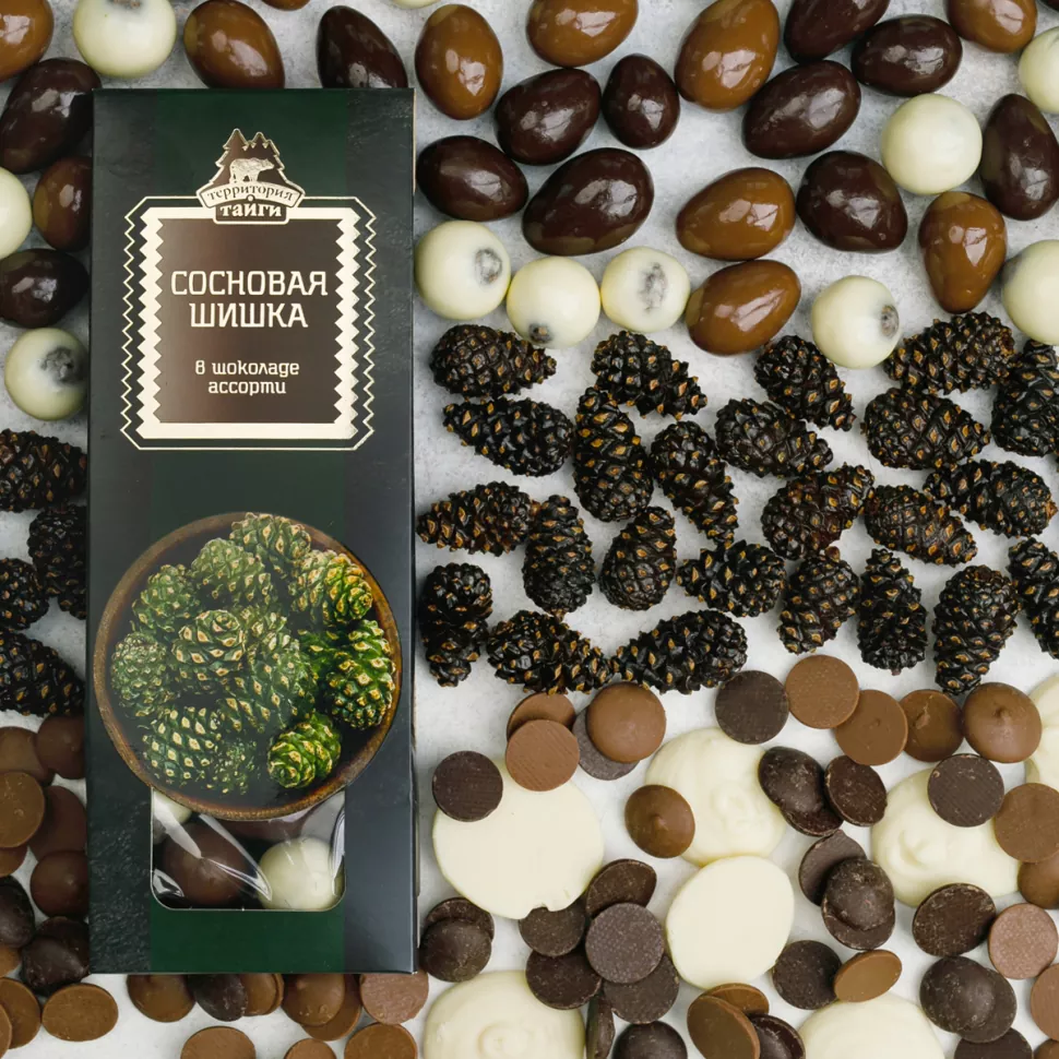Невероятный ансамбль вкусов! Эксклюзивное сибирское лакомство - теперь в новом формате! Сосновая шишка в шоколаде - это кладезь витаминов и микроэлементов! Сочетание молодой сосновой шишки, томленной по старинному рецепту до мармеладоподобного состояния, и натурального бельгийского шоколада никого не оставит равнодушным!